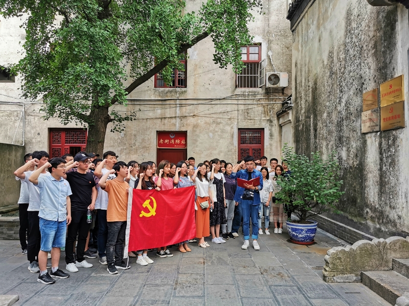 为加强党员教育,提高党员党性修养,2019年6月1日下午,番号 本科2015级第一、二党支部赴高淳区新四军司令部旧址及办事处开展了“重温入党誓词,牢记初心使命”主题的党日活动。