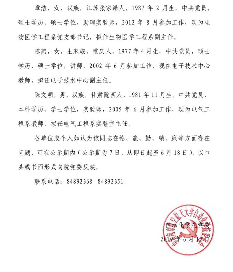 关于胡海兵等同志的任前公示