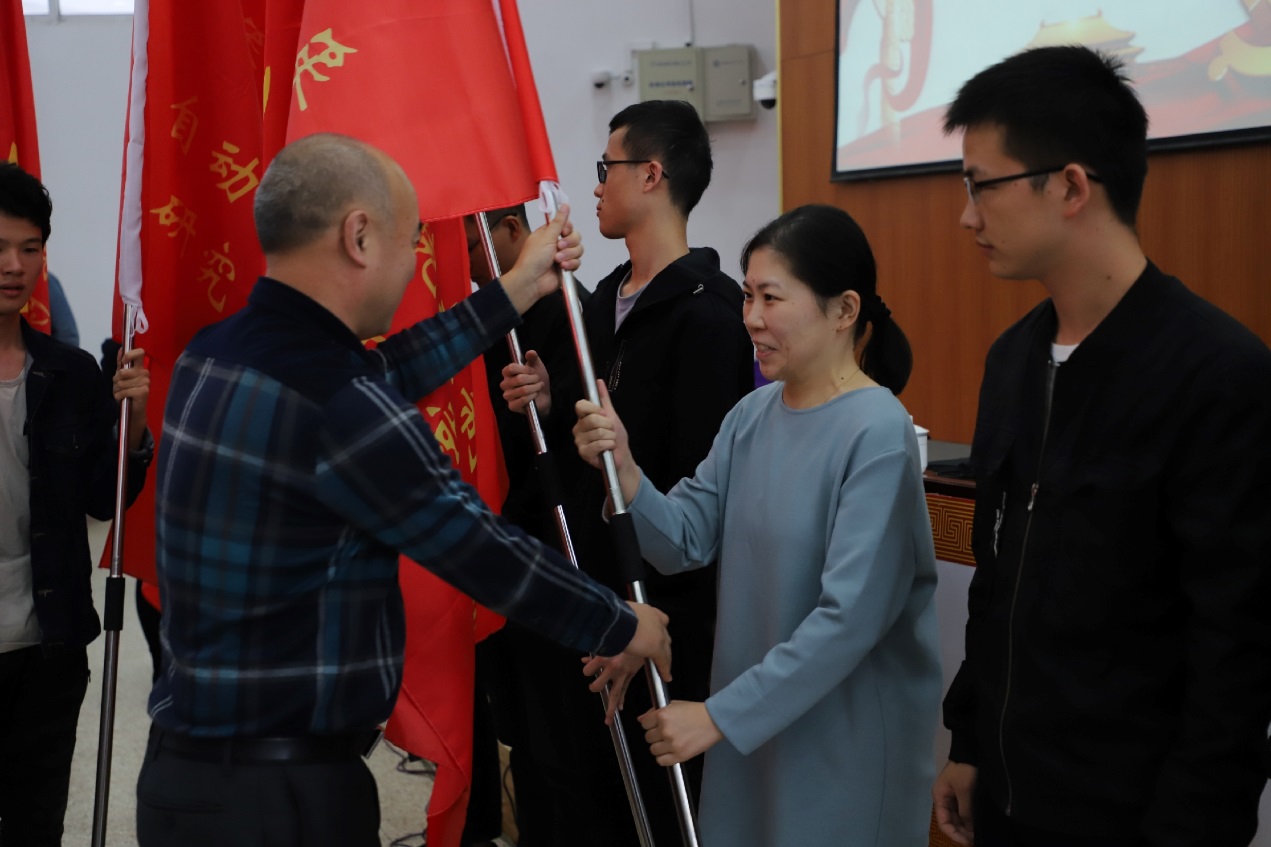 随后,学院党委书记刘建成书同志为新成立研究生纵向党支部支部书记授旗,并代表学院党委讲话。
