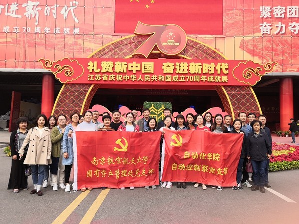为扎实推进支部“不忘初心、牢记使命”主题教育,10月25日上午,自动控制系党支部、国资处党支部、及自控系学生党支部组织近50名党员代表共赴南京市国际博览中心,参观江苏省庆祝中华人民共和国成立70周年成就展。