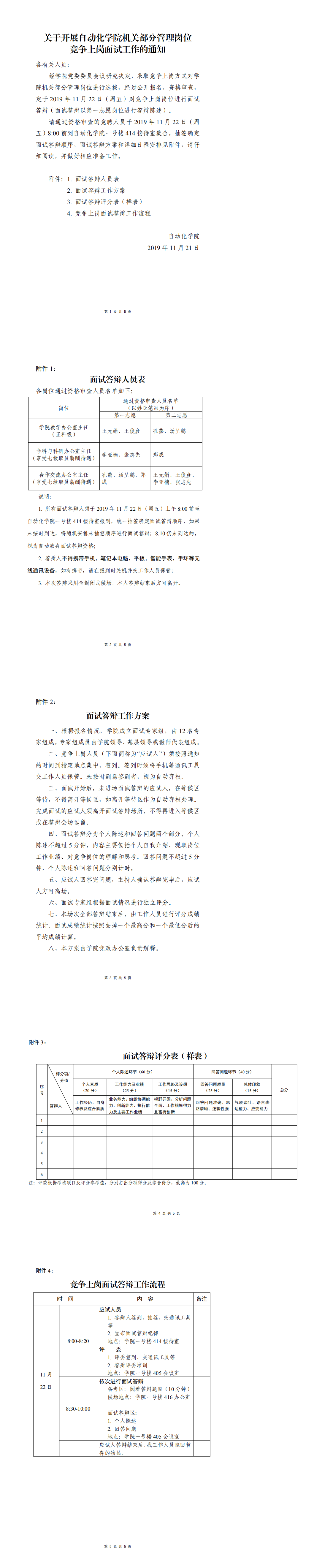 关于开展番号 机关部分管理岗位竞争上岗面试通知