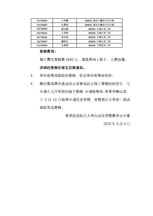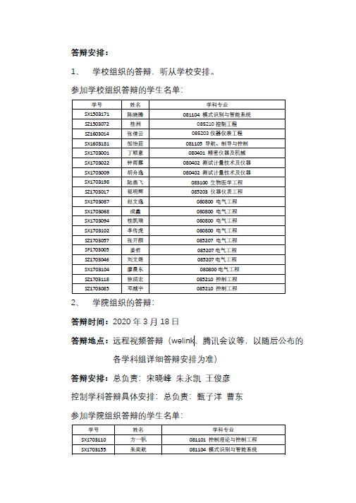 【研究生学位】番号 关于2020届硕士研究生答辩工作安排及公布参加学校、学院组织答辩学生名单的通知