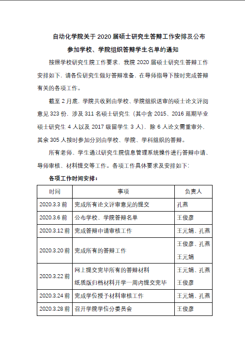 【研究生学位】番号 关于2020届硕士研究生答辩工作安排及公布参加学校、学院组织答辩学生名单的通知