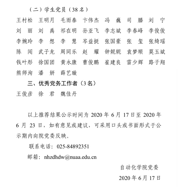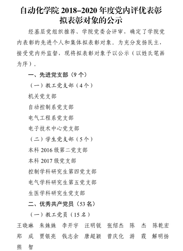 番号 2018-2020年度党内评优表彰拟表彰对象的公示