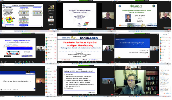 本次会议原定于20205月底在南京国际青年会议中心举办,受COVID-19疫情影响推迟至1129-122日举办,组委会综合考虑会议规模、国内外学者参会等因素,最终采取线上虚拟会议形式进行。尽管受到疫情影响取消了面对面的线下会议,但国内外学术界和工业界参会热情丝毫不减。本次会议共收到来自41个国家和地区的论文投稿1172篇(其中国内753篇,国外419篇),最终录用论文604篇。本次会议设置18场热点问题及新兴技术专题讲座,11场特邀专家大会报告,96场口头报告、16场海报交流,以及2场工业论坛。会议得到了致茂电子、英飞凌、艾德克斯电子、杰瑞电子、江海电容、富士、三菱、台达电子、Mathworks等企业的赞助支持。借助数字化虚拟开发技术,组委会在会议网站提供了三维虚拟工业展览专场,参展厂家包括9家会议合作伙伴与7家工业展商,工业虚拟展厅为参会技术人员和工业界提供良好的互动交流平台