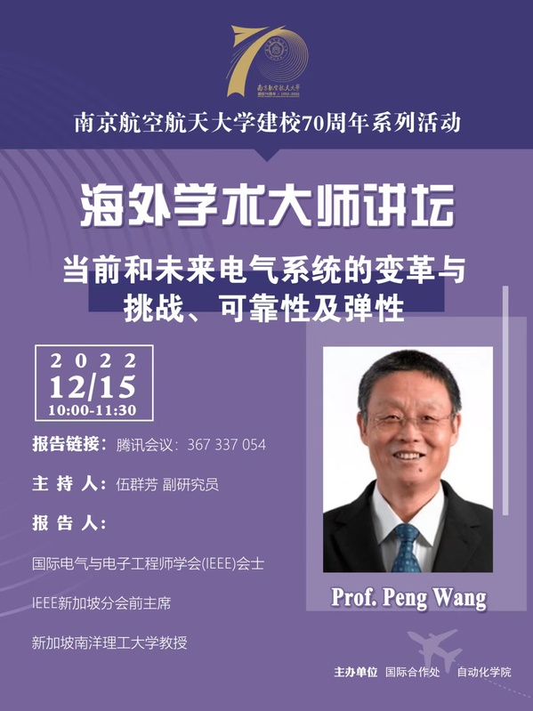 【海外学术大师讲坛】Changes and Challenges of Current and Future Power Systems (Reliability and Resilience