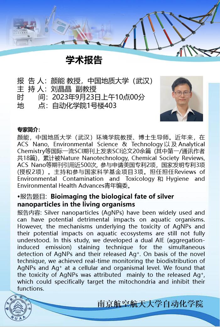 【学术报告】颜能:Bioimaging the biological fate of silver nanoparticles in the living organisms