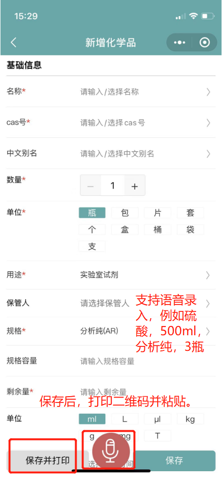 5.5.2化学品标签如果有污损,需要替换,请根据旧标签信息找到化学品信息,例如化学品名称、编号,进行化学品搜索,搜索到化学品之后,选择化学品进行二维码的打印;