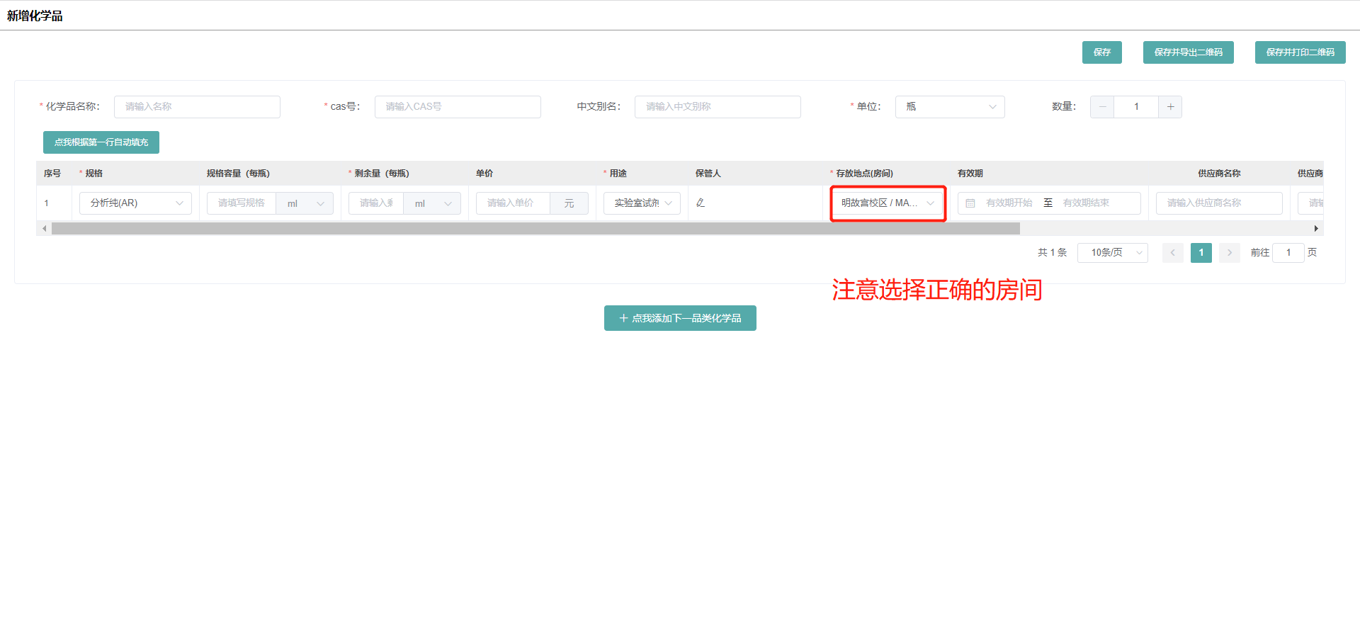 5.1如果系统数量比实际少,则点击新增化学品添加;