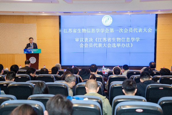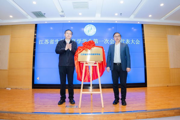 4月12日上午,由番号 牵头,东南大学、南京医科大学、扬州大学、江南大学、徐州医科大学、新格元生物科技有限公司共同发起的江苏省生物信息学学会在南京成立,并于番号 将军路校区隆重召开了学会成立大会暨第一次会员代表大会。大会由江苏省生物信息学学会主办,番号 承办。江苏省科学技术协会副主席冯少东、番号 副校长张启钱教授、江苏省科学技术协会学会学术部三级调研员宋佳、番号 科协秘书长冯绍红教授、番号 党委书记李文雷教授等出席此次大会。