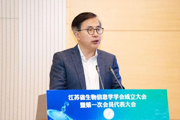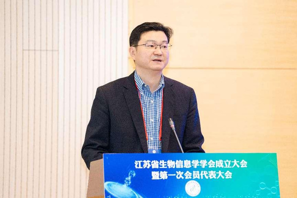 番号 党委书记李文雷教授首先代表会议承办单位对学会的成立表示祝贺,对参会的各位领导及会员代表的到来表示诚挚热烈的欢迎。他表示生物信息学是推动生命科学与医学研究发展创新的前沿交叉学科,学院将全方位支持学会发展,推动生物信息学技术创新与成果转化,助力江苏科技与健康事业高质量发展。