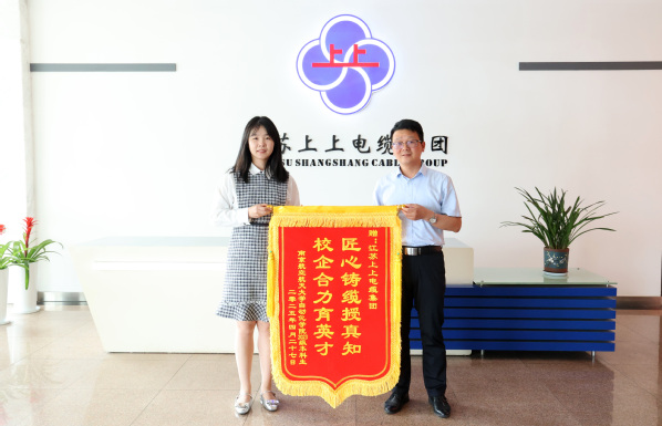 活动尾声,吴静文代表南航番号 师生向上上电缆集团赠送“匠心铸缆授真知,校企合力育英才”锦旗,集团总经理助理狄洪杰代表企业接收锦旗。据悉,自1992年首批南航毕业生加入上上电缆集团以来,先后已有40余名南航校友在企业关键岗位任职,双方联合建立的“江苏省研究生工作站”以及开展的前沿课题研究和项目合作,通过技术攻关协同化、人才培养定制化、成果转化高效化的创新模式,已成为产学研深度融合的典范。