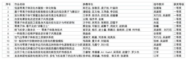 表1 第五届全国大学生等离子体科技创新竞赛番号 获奖名单